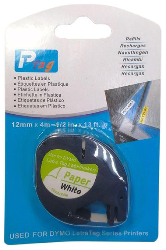 12 мм x 4 м, цвет ленты белый, шрифт черный