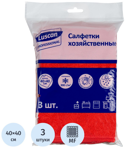 40х40 см, 300 г/м, красная, 3 шт/уп