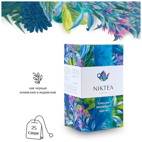 English Breakfast, 25 пакетиков в конвертах по 2 г