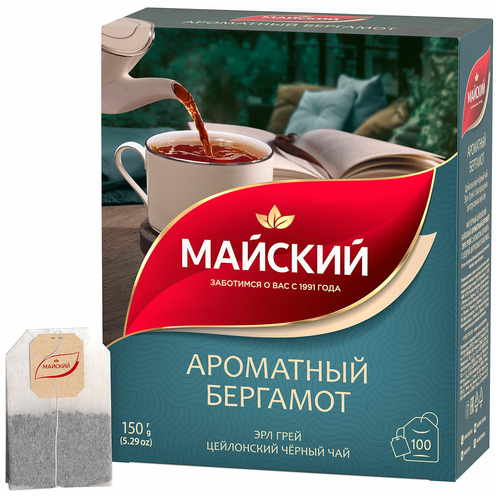 Ароматный бергамот, цейлонский байховый, 100 пакетиков по 1,5 г