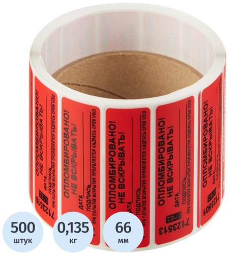 22х66 мм, красные, 500 шт/рулон, оставляет след на поверхности