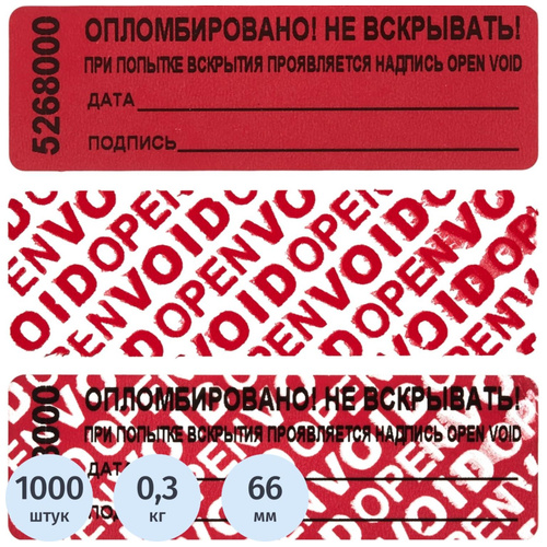22х66 мм, красные, 1000 шт/рулон, оставляет след на поверхности
