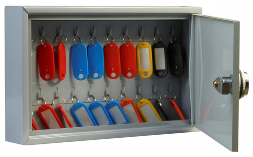 20 ключей, 200х160х60 мм, ключевой замок, металл, серый, с брелоками