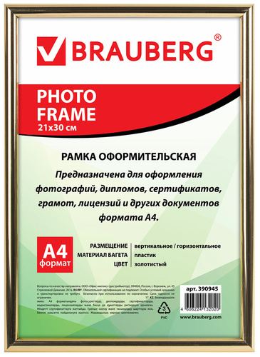 21х30 см, пластик, профиль 16 мм., серебро с двойной позолотой