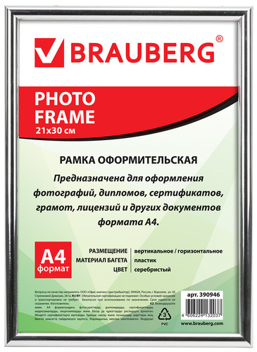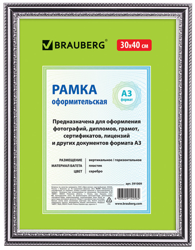 A3, 30x40 см, пластиковый багет 14 мм серебристая