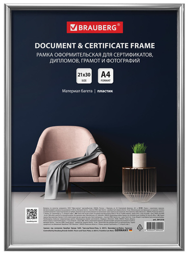 21х30 см, пластик, профиль 14 мм., матовое серебро