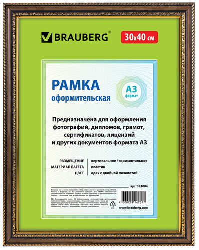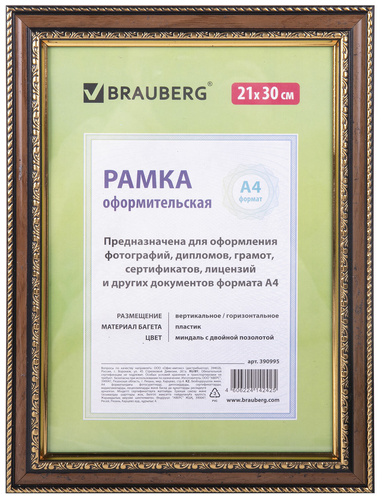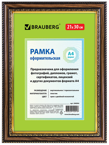 21х30 см, пластик, профиль 30 мм., орех с двойной позолотой