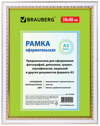 30х40 см, пластик, профиль 20 мм., белая с двойной позолотой