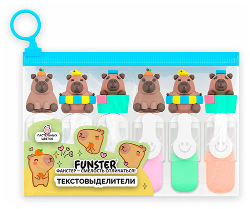 Текстовыделитель с топперами FUNSTER (ФАНСТЕР), "КАПИБАРЫ"