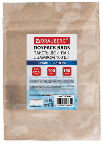 Пакеты фасовочные дой-пак с замком ZIP LOCK крафт BRAUBERG