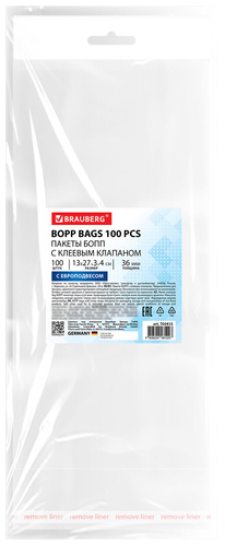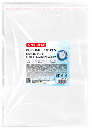 Пакеты фасовочные БОПП с клеевым клапаном BRAUBERG