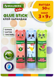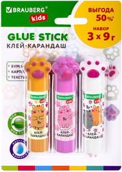 Клей-карандаш BRAUBERG KIDS Зверята: кошка, мышка, хрюшка