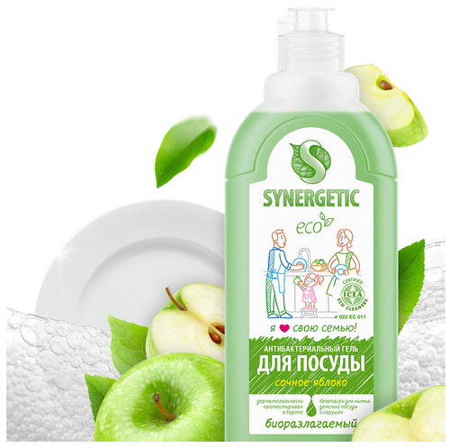 Средство для мытья посуды антибактериальный SYNERGETIC Яблоко