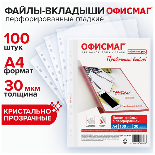 А4, 22-25 мкм, гладкие, 100 шт/уп