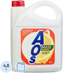 Средство для мытья посуды AOS Лимон гель 4.8 л <br><br>Оптимальный формат упаковки для чистой посуды и удаления жира! Прекрасная густая формула с нейтрализующим ароматом для идеальной чистоты и блеска. Средство эффективно удаляет жир и остатки пищи с поверхности посуды, как в горячей, так и в холодной воде. Бережно воздействует на кожу рук. Главной отличительной особенностью формулы «AOS» является его безопасность, так как оно полностью смывается с поверхности посуды. Идеальное решение для тех, кто заботится о себе и своих близких. «AOS»- для семьи я выбираю лучшее.<br><br><b>Способ применения:</b> для мытья посуды непосредственно под струёй воды нанесите 1–2 капли средства на влажную губку, протрите посуду и ополосните её под струёй воды или растворите 1 чайную ложку средства в 5 л воды, вымойте посуду, ополосните водой. При повышенной жёсткости воды дозу средства увеличить.<br><br><b>Меры предосторожности:</b> беречь от детей. При попадании на слизистую оболочку или глаза промыть их проточной водой.<br><br><b>Состав:</b> 5% или более, но менее 15%: анионные ПАВ; менее 5%: неионогенные ПАВ, соль этилендиаминтетрауксусной кислоты, ароматизирующий компонент (в т. ч. цитраль, лимонен), экстракт лимона, регулятор рН, красители, консервант.<br><br><b>Условия хранения:</b> при температуре от −10 °С до 25 °С, в сухом помещении. Избегать попадания прямых солнечных лучей и не хранить в близи отопительных приборов. Средство замерзает, после размораживания сохраняет свои свойства.<br><br><b>Срок годности:</b> 24 месяца с даты изготовления (дату изготовления см. на упаковке).