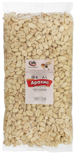 Арахис жареный со вкусом чеснока 1 кг<br><br>Арахис жареный Нижноворех — это вкусный и полезный перекус, который понравится всем. Этот арахис жарится до золотистого цвета, что придаёт ему неповторимый аромат и хрустящую текстуру. Он станет основой для домашнего арахисового масла, выпечки, салатов или просто приятным перекусом в течение дня. Арахис богат белком и полезными жирами, что делает его ценным источником энергии и питательных веществ.<br>Состав: арахис обжаренный, соль, масло подсолнечника, мальтодекстрин, глюкоза, молочная сухая сыворотка, усилители вкуса и аромата (Е621, Е627, Е631), натуральные и идентичные натуральным вкусоароматические вещества, агент антислеживающий (Е551), красители (Е141, Е100, Е160, 150с), антиокислитель (Е300), регулятор кислотности (Е270).<br>Пищевая ценность в 100 г продукта: белки — 28 г, жиры — 44.9 г, углеводы — 9 г.<br>Энергетическая ценность: 2238.7 кДж/534.7 ккал.<br>Условия хранения: хранить в сухом месте при температуре не выше +25 С и относительной влажности воздуха не более 70%.<br><br>Внешний вид и/или характеристики товара могут быть изменены производителем в соответствии с производственным процессом.