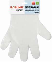 Одноразовые перчатки большого размера L выполнены из полиэтилена плотностью 6 микрон и имеют гладкий срез манжеты. Устойчивы к химическим средствам. Сохраняют тактильные ощущения. Отсутствие технической пудры на перчатках максимально уменьшает риск загрязнения как рук, так и продукции. 50 пар в упаковке. Поставляются в пакете с европодвесом.