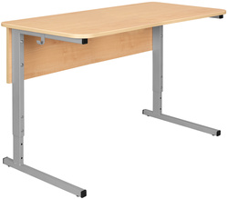 Опоры регулируемые, позволяют менять высоту парты от 640 до 780 мм, шаг регулировки – 60 мм. Стол имеет размер 1200х500 мм, что позволяет комфортно разместиться за ним двоим людям. Столешница и царга изготовлены из плиты ДСП 16 мм с ламинированным покрытием класса эмиссии Е1. Углы столешницы имеют скругление радиусом 60 мм, что обеспечивает безопасность при эксплуатации.