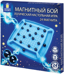 В набор входит игровое поле и 20 мощных магнитов, упакованных в специальный мешочек. Игра построена на элементарных принципах и будет понятна даже самым юным игрокам. Цель игры – избавиться от всех своих магнитов первым.
