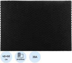 Коврик входной (придверный) ячеистый грязезащитный 68×48 см чёрный (УК-Р 068048)<br><br>Универсальный коврик из ЭВА — незаменимый предмет в интерьере дома или квартиры, прекрасно подходит для прихожей, надёжно защищает от грязи, песка и влаги, что особенно актуально в дождливую погоду. Лёгкий и гибкий, коврик легко складывается и убирается. Мыть проточной водой, быстро сохнет.<br>Материал ЭВА гипоаллергенный, не вызывает рост бактерий и грибка. Устойчивость к износу и долговечность делают его идеальным выбором для активного использования.