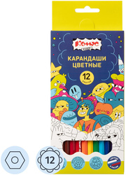 Карандаши цветные Комус Класс Максики 12 карандашей 12 цветов шестигранные<br> <br> Цветные карандаши Комус Класс Максики подходят для школ, художественных кружков, занятий рисованием и домашнего использования. Шестигранный корпус диаметром 7 мм обеспечивает удобство при использовании. Карандаш длиной 175 мм подходит для детей любого возраста. Диаметр грифеля — 3 мм. Грифель толстый, мягкий и плавно рисует, не царапая бумагу. Упаковка картонная коробка с европодвесом удобна для хранения и переноски.<br> <br> В наборе 12 шт. Количество цветов — 12. Материал корпуса — дерево. Размер упаковки — 90×8x215 мм. Продукт применяется для рисования и развития творческих способностей детей.
