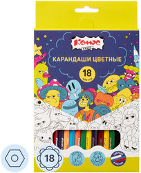 Карандаши цветные Комус Класс Максики 18 карандашей 18 цветов шестигранные<br> <br> Цветные карандаши Комус Класс Максики подходят для школ, художественных кружков, занятий рисованием и домашнего использования. Шестигранный корпус диаметром 7 мм обеспечивает удобство при использовании. Карандаш длиной 175 мм подходит для детей любого возраста. Диаметр грифеля — 3 мм. Грифель толстый, мягкий и плавно рисует, не царапая бумагу. Упаковка картонная коробка с европодвесом удобна для хранения и переноски.<br> <br> В наборе 18 шт. Количество цветов — 18. Материал корпуса — дерево. Размер упаковки — 132×9x215 мм. Продукт применяется для рисования и развития творческих способностей детей.