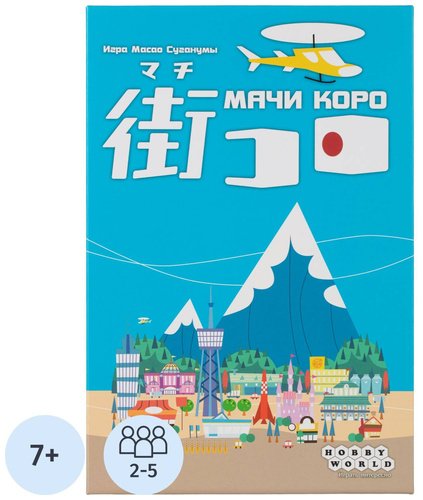 Настольная игра Hobby World Мачи Коро<br><br>Добро пожаловать в «Мачи Коро» — увлекательную настольную игру, где каждый игрок становится мэром собственного города! Вам предстоит развивать инфраструктуру, строить магазины, фабрики, сыроварни и пекарни, а также возводить достопримечательности, чтобы привлечь туристов и сделать свой город процветающим.<br><br>Игроки бросают кубики и приобретают новые карты, стараясь обогнать соперников в развитии города. Однако конкуренция не дремлет — другие мэры тоже строят свои мегаполисы и готовы побороться за титул лучшего градоначальника!<br><br>Игра рассчитана на 2-5 игроков и подойдёт для детей от 7 лет и взрослых. Средняя продолжительность партии составляет 30-45 минут. Размер упаковки — 235×157×45 мм.<br><br>Состав набора:<br>— 30 стартовых карт;<br>— 87 карт резерва;<br>— 60 монет различного номинала;<br>— 2 кубика;<br>— 15 стартовых карт из расширения;<br>— 58 карт резерва из расширения;<br>— Правила игры.