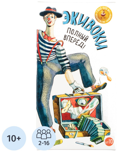Настольная игра Экивоки Полный вперёд<br> <br> «Экивоки Полный вперёд» — продолжение популярной игры на объяснение слов разными способами: жестами, словами, рисунками, звуками, лепкой из пластилина и другими. Эта игра создана для семейного и дружеского отдыха и идеально подходит для игроков от 10 лет. В игре могут участвовать от 2 до 16 человек, что делает её отличным выбором для молодёжных компаний, а также для людей разных поколений.<br> <br> Задания в игре основаны на современном фольклоре, мемах, цитатах и реалиях жизни российских городов. Тематика охватывает следующие области: Европа, Америка, Азия, Африка, Моря и океаны. Задания уникальны и не повторяются в других наборах.<br> <br> Игровой процесс увлекательный и разнообразный: игроки поочередно вытягивают карты, объясняют и угадывают слова, используя различные методы, от рисунков до лепки. Игра создаёт атмосферу веселья и динамичного взаимодействия, развивая креативность, командную работу и общие знания.<br> <br> Размер упаковки — 100×30×185мм. Средняя продолжительность игры — 30-60 минут.<br> <br> Состав набора:<br> — 72 карты с заданиями;<br> — Песочные часы;<br> — Пластилин;<br> — Блокнот и карандаш;<br> — Игровой кубик;<br> — Правила игры.