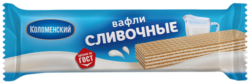Вафли Коломенский сливочные 20 г (154 штуки в упаковке)<br /> <br /> Большое количество начинки придаёт вафлям «Сливочным» яркий, натуральный вкус и приятный молочный аромат. Вафли «Коломенские» выпечены по уникальной технологии, делающей их нежными и хрустящими, с особенным карамельным вкусом вафельного листа. При изготовлении вафель мы не используем искусственные красители, консерванты, усилители вкуса, стабилизаторы и продукты ГМО.<br /> Состав: мука пшеничная общего назначения М55-23, сахар белый, жир кондитерский (рафинированное дезодорированное растительное масло в натуральном и модифицированном виде (пальмовое), эмульгатор соевый лецитин, антиокислитель концентрат смеси токоферолов), молоко сухое обезжиренное, сыворотка молочная сухая, эмульгатор соевый лецитин, соль, разрыхлитель — гидрокарбонат натрия (сода пищевая), сливки сухие, ароматизаторы.<br /> Пищевая ценность: на 100 г — белки 5 г, жиры 29 г, углеводы 63 г.<br /> Энергетическая ценность: на 100 г — 530 ккал.<br /> Стандарт производства: ГОСТ 14031-2014.<br /> Условия хранения: хранить при температуре от +15 °C до +21 °C.