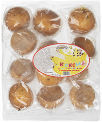 Кекс Махариши с банановым джемом 420 г<br><br>Кексы для детского питания с банановым джемом предназначены для питания детей школьного и дошкольного возраста от 3 лет.<br><br>Состав: мука пшеничная хлебопекарная первого сорта, сахар, джем (сахар, пюре банановое, декстроза, сироп глюкозно-фруктозный, стабилизатор — пектин, регулятор кислотности — лимонная кислота, натуральный ароматизатор «Банан», краситель пищевой — куркумины), масло подсолнечное, вода питьевая, яичный меланж, патока крахмальная, разрыхлители (гидрокарбонат натрия, пирофосфат натрия), соль, ароматизатор натуральный «Масло сливочное».<br>Содержит глютен.<br><br>Пищевая ценность на 100 г продукта:<br>— Белки — 5.5 г.<br>— Жиры — 22 г.<br>— Углеводы — 52 г, в том числе добавленные сахара — 25 г.<br>— Энергетическая ценность — 428 ккал / 1792 кДж.<br><br>Тип упаковки: мягкая. Вес нетто: 420 г. Срок хранения: полгода.<br><br>Условия хранения: при температуре до +18°С и относительной влажности воздуха не более 75%. После вскрытия индивидуальной упаковки хранить не более 24 часов.<br><br>Страна происхождения: Россия.