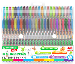 Набор включает 48 ручек с различными эффектами и цветами чернил: 8 ручек с классическими чернилами, 10 ручек с неоновыми оттенками, 10 ручек с эффектом металлик, 10 ручек с пастельными оттенками, 10 ручек с блестками. Разнообразная палитра открывает безграничные возможности для творчества и позволяет воплотить в жизнь даже самые нестандартные фантазии.