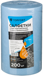 Универсальные высококачественные салфетки TOPFORT из плотного каландрированного нетканого материала 'мельтблаун'. 100% полипропилен. Впитывают воду, а также химические загрязнения и жидкости. Применяются во всех видах промышленной уборки и на любых поверхностях, в том числе для протирки рук. Цвет материала голубой, количество салфеток в рулоне — 200 штук. Удобны в применении за счет нанесения перфорации. <br><br>Внешний вид и/или характеристики товара могут быть изменены производителем в соответствии с производственным процессом.