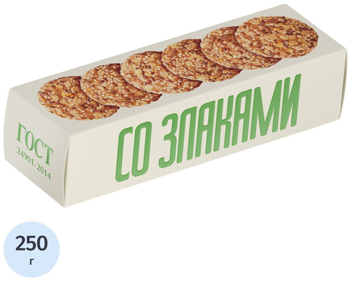 Печенье овсяное Полёт классическое 5 злаков 250 г<br><br>Печенье «СССР» со злаками на сливочном масле. Вкусное и натуральное овсяное печенье, на сливочном масле в традиционной советской упаковке. Особый вид овсяного печенья, щедро усыпанный семенами и злаками, с добавлением изюма и орехов.<br><br>Состав: сахар, мука пшеничная в/с, вода питьевая, хлопья овсяные, изюм, масло сливочное, масло подсолнечное рафинированное дезодорированное, мука овсяная, арахис жареный, кунжут, семена льна, хлопья ржаные, хлопья ячменные, мука рисовая цельнозерновая, соль пищевая, разрыхлитель-гидрокарбонат натрия (сода пищевая), корица молотая, экстракт ванили натуральный.<br><br>Пищевая ценность на 100 г: белки — 8,0 г, жиры — 19,0 г, углеводы — 66,0 г. Энергетическая ценность: 1960 кДж (470 ккал).<br><br>Хранить при температуре (18+/-5) °С и относительной влажности воздуха не более 75%. Срок годности 90 суток.<br>