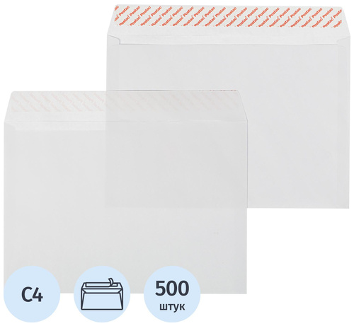Конверт Комус C4 100 г/кв.м белый стрип размером 229×324 мм выполнен из высококачественного офсета 100 г/кв.м, имеет клеевое нанесение типа стрип (отрывная силиконовая лента). Предназначены для пересылки 50 листов А4 формата, что равно 250 г веса. Упаковка 500 штук. Срок годности не ограничен.