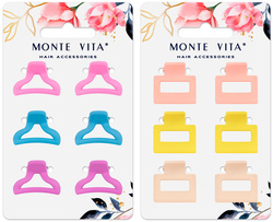 Набор из шести крабов в пастельных или ярких тонах с мягким покрытием soft touch. Удобный размер (2,5 см) подходит для средних и коротких волос, бархатистая поверхность предотвращает соскальзывание.