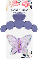 Два краба насыщенного фиолетового цвета с контрастным декором: • Soft touch – для комфортных повседневных причесок, • Глянцевый – для вечерних образов.