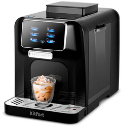 Удобная панель управления с дисплеем делает выбор режимов интуитивно понятным. В комплекте есть подставка для чашек, а съёмный поддон для капель с поплавком сигнализирует о необходимости опорожнения. Резервуар для воды – 1,5 л, контейнер для зёрен – 200 г, что достаточно для нескольких дней использования. Мощность устройства – 1480 Вт, уровень шума – до 70 дБ, длина шнура – 1 м, а отсек для хранения шнура расположен на дне корпуса.
