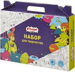 Набор для творчества Комус Класс Максики 15 предметов, упакован в яркий привлекательный короб размером 35.7x26.7x10.1 см. Включает самый актуальный для творчества ассортимент. Состав набора подобран специальным образом, чтобы обеспечить юного школьника всем необходимым для лепки и рисования. Набор для творчества в картонном чемоданчике с ручкой включает 15 предметов: Альбом для рисования А4 - 1 штука. Карандаш чернографитный HB - 2 штуки. Ластик - 1 штука. Карандаши цветные 12 цветов - 1 штука. Короб - 1 штука. Гуашь 12 цветов - 1 штука. Доска для лепки А5 - 1 штука. Пластилин 12 цветов - 1 штука. Фломастеры 12 цветов - 1 штука. Кисти набор - 1 штука. Емкость для воды - 1 штука. Палитра - 1 штука. Точилка - 1 штука. Краски акварельные 12 цветов - 1 штука. Наполнение набора может меняться на соответствующее по составу и стоимости в зависимости от наличия товара на складе.