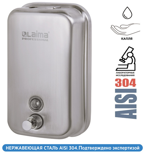 Преимущества дозатора для жидкого мыла LAIMA PROFESSIONAL: 1) Гигиеничность. 2) Высокий уровень комфорта для пользователей. 3) Легкость и простота в эксплуатации. 4) Не требует особого ухода. 5) Надежность конструкции.
