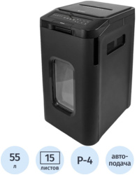 Объем приемной корзины 55 литр Количество уничтожаемых листов (70 г/кв.м) 15 лист Уничтожение компакт-дисков Нет Уничтожение канцелярских скрепок Да Уничтожение степлерных скоб Да Уничтожение кредитных карт Да Защита от перегрева Да