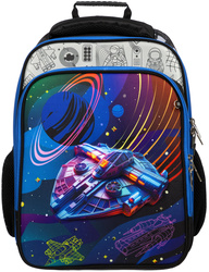 Школьный ранец Комус Класс Stright 3D создан специально для мальчиков, увлечённых космической тематикой. Анатомическая спинка имеет эргономичную конструкцию с мягкими дышащими подушечками, которые помогают равномерно распределить нагрузку на позвоночник ребёнка. Два вместительных основных отделения позволяют удобно организовать пространство для учебников и тетрадей. Четыре функциональных кармана обеспечивают быстрый доступ к часто используемым школьным принадлежностям и личным вещам. Мягкие регулируемые лямки с воздухопроницаемой подкладкой легко настраиваются под рост ученика для максимально комфортного ношения. Усиленное водоотталкивающее дно из износостойкого полиэстера оснащено пластиковыми ножками для защиты от истирания и влаги. Светоотражающие элементы расположены на фронтальной части ранца и лямках, что обеспечивает безопасность ребёнка в тёмное время суток. Дополнительным преимуществом модели являются встроенные светодиоды, создающие оригинальную подсветку космического дизайна. Объем ранца составляет 16 литров при лёгком весе всего 860 граммов. Габаритные размеры изделия — 290×145×360 мм. Синий цвет корпуса дополнен объёмным 3D рисунком космического корабля. Ранец производится в России и отвечает всем требованиям качества и безопасности.
