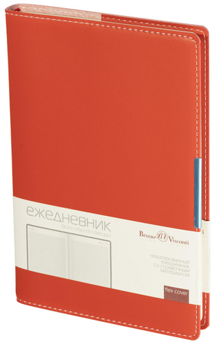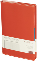 Ежедневник недатированный Bruno Visconti Metropol — искусственная кожа А5 136 листов красный. Ежедневник с гибкой обложкой красного цвета из коллекции Metropol — стильный и функциональный аксессуар для делового человека. Обложка выполнена из высококачественного переплётного материала с контрастной строчкой белыми нитками по периметру, а ляссе в цвет обложки добавляет удобства при использовании. Стильный металлический шильдик и модный форм-фактор делают его отличным выбором для современного профессионала.<br><br>Внутренний блок состоит из 136 листов (272 страницы) бежевой бумаги плотностью 90 г/кв.м., с клеточной линовкой, что придаёт аккуратность записям. Листы недатированные, что позволяет начинать использовать ежедневник в любой день года и записывать столько информации, сколько нужно. На первых 18 страницах содержится справочная информация, охватывающая важные темы, такие как часовые пояса, аэропорты Европы, телефонные коды, размеры одежды и формат бумаги.<br><br>Ежедневник поставляется в подарочной упаковке. Возможность нанесения тиснения (гравировка, блинт, фольга, шёлкография, УФ-печать) позволяет персонализировать изделие, придавая ему уникальность.<br><br>Этот ежедневник является идеальным компаньоном для современного профессионала, сочетая стиль, функциональность и высокое качество.