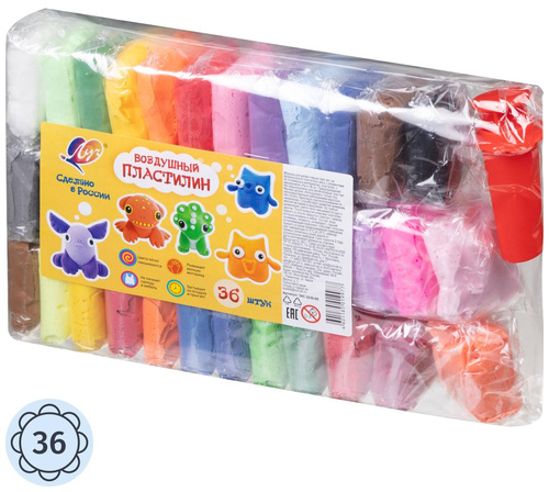 <br><br>Пластилин лёгкий Луч 36 цветов 360 грамм<br><br>Лёгкий пластилин предназначен для творчества и лепки объёмных фигур. Масса изготовлена на водной основе с добавлением микросфер, полимеров, глицерина и пигментов. Пластилин мягкий, эластичный и не требует предварительного разминания. Он не липнет к рукам и поверхностям, а после лепки застывает на воздухе, превращаясь в прочную и лёгкую структуру, напоминающую пенопласт. Цвета легко смешиваются между собой, а готовые изделия можно окрашивать и покрывать лаком. Набор включает 36 брусков по 10 г, представленных в классической цветовой палитре. Упаковка — герметичный полиэтиленовый пакет.