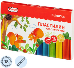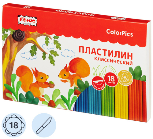 Пластилин классический Комус Класс (№ 1 School) ColorPics 18 цветов 360 грамм<br><br>Пластилин предназначен для творческих занятий в школе, детском саду и дома. Занятия с ним способствуют развитию мелкой моторики и образного мышления ребёнка.<br><br>Пластилин обладает высоким качеством. Он легко принимает нужную форму, не требует предварительного разминания, не застывает на воздухе и не прилипает к рукам. Пластичные свойства пластилина позволяют ему идеально сохранять форму.<br><br>Набор включает 18 ярких, насыщенных цветов, которые легко смешиваются между собой, создавая новые оттенки. В комплект входит стека размером 12×15 мм весом 3 г. Пластилин безопасен для детей, не токсичен.<br><br>Общая масса набора составляет 360 г. Размер упаковки — 242×150×18 мм. Набор произведён в России.<br><br>В рамках ребрендинга производится перевод данного артикула с ТМ № 1School на ТМ Комус Класс с сохранением всех потребительских характеристик товара. На переходный период допускается поставка данной продукции в двух вариантах дизайна.