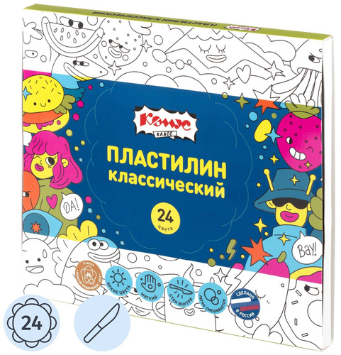 Пластилин классический «Комус Класс Максики» — набор из 24 брусков качественного пластилина. Лепка — одно из самых полезных и продуктивных занятий для детей. Она способствует развитию воображения, мышления, мелкой моторики, дает возможность ребенку моделировать мир и свое представление о нем. С пластилином «Комус Класс Максики» лепка снизит напряжение, займет ребенка на несколько минут или даже часов, отвлечет от телевизора или планшета. Пластилин может использоваться в детских садах, школах, художественных кружках или же просто в домашних условиях. Преимуществом этого пластилина является его хорошая консистенция, позволяющая лепить более мелкие детали, при этом избегая излишнего прилипания к рукам. За счет своей плотности, классический пластилин лучше сохраняет форму поделок. Он прекрасно подойдет для более взрослых скульпторов. Цветовая гамма — классическая, в набор входит 4 стека для более точного и детального моделирования. Пластилин «Комус Класс Максики» — это возможность дать волю воображению и радоваться своим успехам.