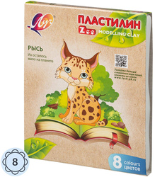 Пластилин классический Луч Zoo 8 цветов 120 грамм.<br> <br> Пластилин предназначен для детского творчества, в частности для лепки и моделирования. Его рекомендуют не только педагоги и родители, но и профессиональные мультипликаторы. Пластилин отличается оптимальной мягкостью и твердостью, не рвется и не крошится при перегибании, а поделки из него хорошо держат форму и не выцветают. Продукт не имеет выраженного запаха и не липнет к рукам.<br> <br> Пластилин представлен в классической цветовой гамме, количество брусков в упаковке — 8 шт., массой 15 г каждый. Общая масса комплекта составляет 120 г. Упаковка — картонная коробка размером 125×154×15 мм. Аксессуары в комплект не входят. Пластилин произведен в России.