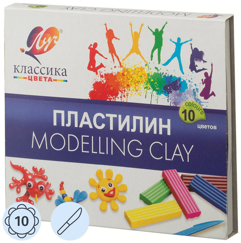 Пластилин классический Луч Классика 10 цветов 200 грамм (7С 304-08).<br> <br> Пластилин Луч Классика предназначен для лепки и моделирования. Он способствует развитию мелкой моторики рук и пространственного мышления, что делает его увлекательным видом досуга.<br> <br> Пластилин изготовлен из высококачественных компонентов. Он не окрашивает руки, не прилипает к пальцам, хорошо держит форму, легко смешивается и мягко растягивается при нагревании. В набор входит стека длиной 13 см, которая позволяет наносить орнамент на изделия, позитивно влияя на творческое мышление ребенка.<br> <br> Набор включает 10 цветов: желтый, белый, оранжевый, красный, фиолетовый, салатовый, зеленый, синий, коричневый, черный. Общий вес набора: 200 г, вес одного бруска: 20 г. Упаковка — картонная коробка размером 166×142×18 мм. Производство — Россия.