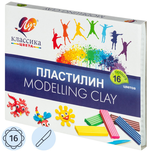 Пластилин классический Луч Классика 16 цветов 320 грамм.<br> <br> Пластилин Луч «Классика» предназначен для лепки и моделирования. Он изготовлен из высококачественных компонентов и обладает рядом преимуществ: не окрашивает руки, не прилипает к пальцам, хорошо держит форму, легко смешивается и мягко растягивается при нагревании.<br> <br> В набор входят 16 цветов: желтый, белый, бежевый, оранжевый, розовый, красный, сиреневый, бирюзовый, фиолетовый, салатовый, голубой, синий, коричневый, красно-коричневый, серый, черный.<br> <br> Входящая в комплект стека длиной 13 см позволяет наносить орнамент на готовые изделия, что способствует развитию творческого мышления.<br> <br> Пластилин Луч «Классика» подходит для детского творчества, развивая мелкую моторику и пространственное восприятие. Продукт упакован в картонную коробку, в продажу поставляется по 14 наборов в транспортной упаковке. Масса одного бруска составляет 20 г, общий вес набора — 320 г. Страна происхождения — Россия.