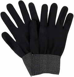 Нейлоновые перчатки 15 класса трикотажа. Эластичные и комфортные, плотно облегают руку, обеспечивают гибкость и тактильную чувствительность пальцев. Могут растягиваться на 2 размера. Нейлоновые перчатки черного цвета без ПВХ. • Бесшовная основа 15-го класса вязки прекрасно вентилируется и не оставляет ворсинок. • Универсальны, применяются для любых механических работ. • Оверлок Х нить кольцом обеспечивает превосходную фиксацию перчатки на запястье. • Полная длина - 22-23 см. • Вес пары - 18-20 г.