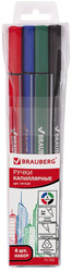 Супертонкий металлический наконечник - 0,4 мм. В наборе 4 цвета: черный, синий, красный, зеленый. Эргономичный трехгранный корпус с тиснением фольгой. Цвет корпуса соответствует цвету чернил.